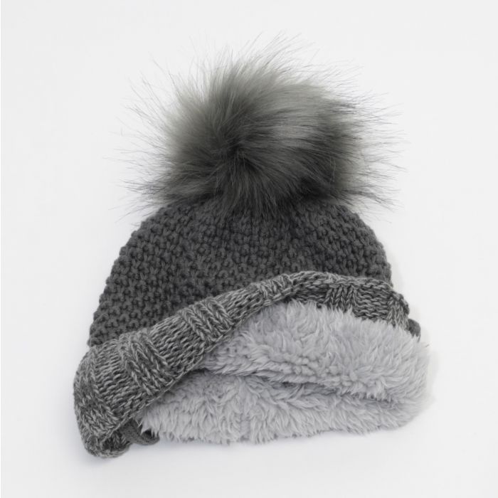 Calikids FINAL SALE W2102 Knit Pompom Hat Charcoal Combo