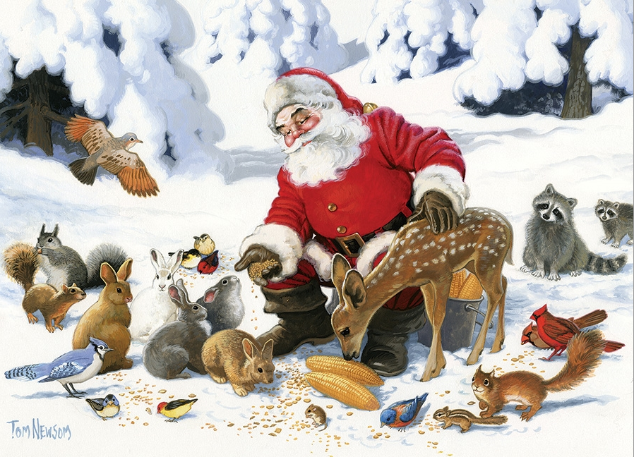 Santa Claus and Friends join together for feeding time on this cold snowy winter day. But all the furry friends will keep each other warm and warm your heart as you put this 350 piece Family Piece puzzle together. With three different sized pieces from large to medium and small, hands of all sizes and puzzlers of varying skill will be able to work together to complete this fun image.