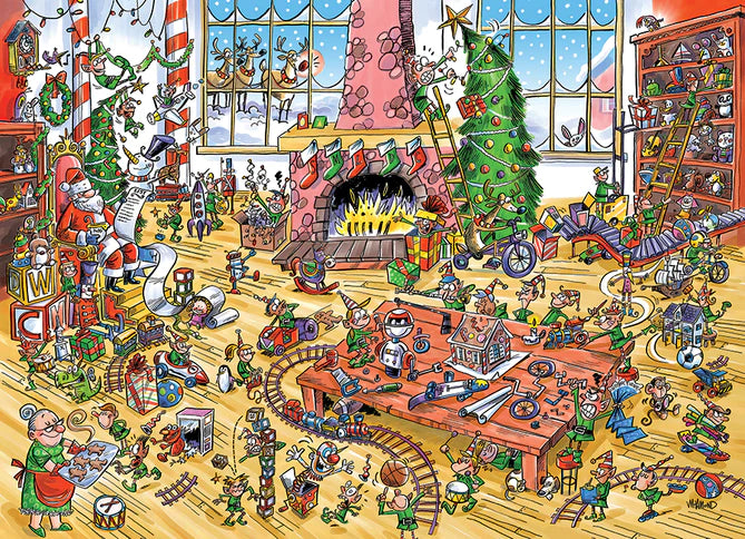 Elves At Work is such a fantastic 1000 piece puzzle that will make you giggle as you catch the antics of the elves and toys acting up! And don't miss the Easter Bunny peeking in the window!