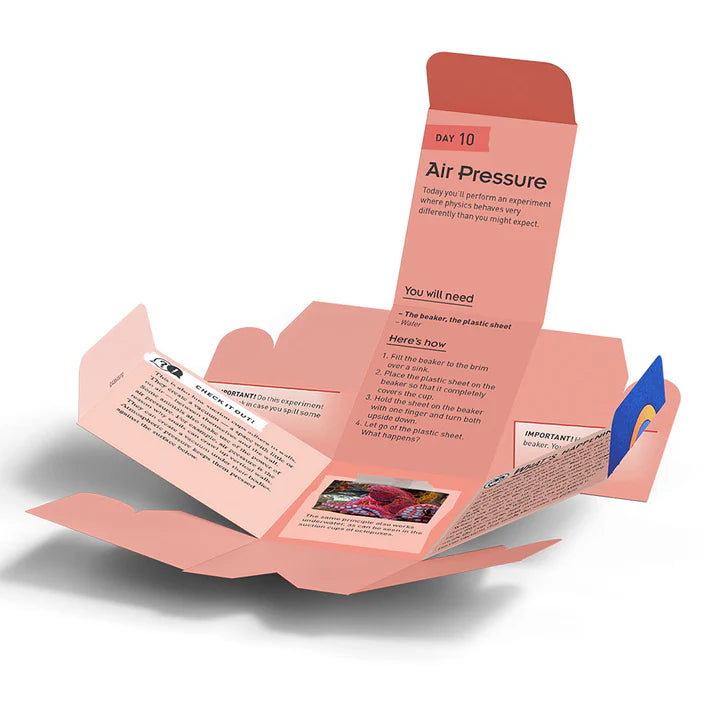 Daily box cleverly unfolds to reveal an instruction manual with step-by-step directions and scientific explanations