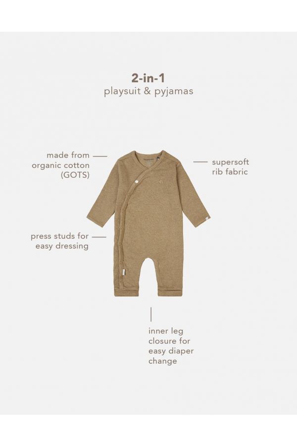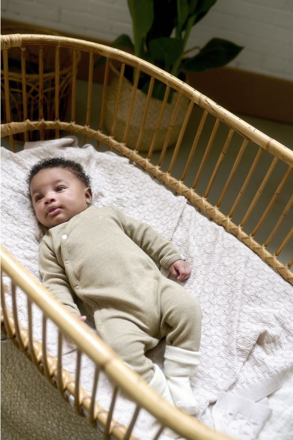 The Nevis Playsuit features handy press studs on the body and on the inside of the legs. This has made getting dressed, undressed and changing nappies a great deal easier. The ribbed fabric and turn-ups have beautifully finished off the cosy look. The playsuit is available in various different colours, which one are you going to go for? This playsuit is made from GOTS-certified organic cotton. Not just super soft for your baby, but it also meets high international production and environmental standards.