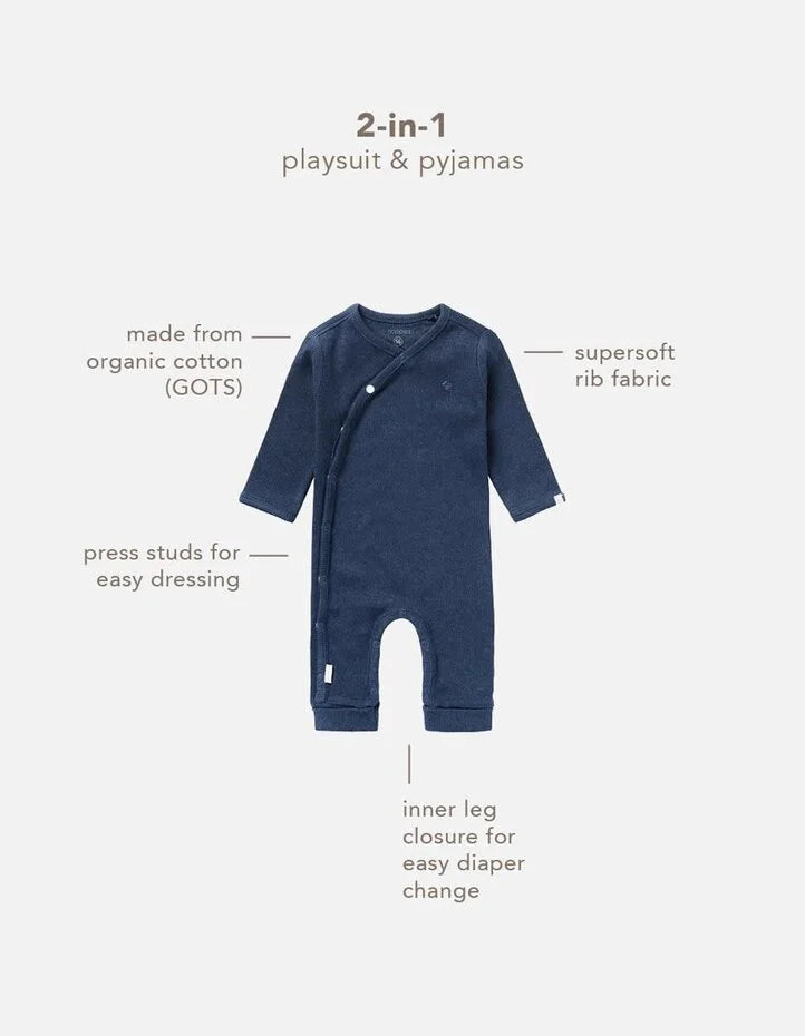 The Nevis Playsuit features handy press studs on the body and on the inside of the legs. This has made getting dressed, undressed and changing nappies a great deal easier. The ribbed fabric and turn-ups have beautifully finished off the cosy look. The playsuit is available in various different colours, which one are you going to go for? This playsuit is made from GOTS-certified organic cotton. Not just super soft for your baby, but it also meets high international production and environmental standards.