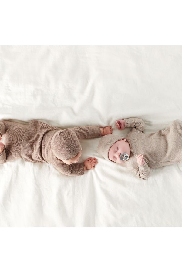 The Nevis Playsuit features handy press studs on the body and on the inside of the legs. This has made getting dressed, undressed and changing nappies a great deal easier. The ribbed fabric and turn-ups have beautifully finished off the cosy look. The playsuit is available in various different colours, which one are you going to go for? This playsuit is made from GOTS-certified organic cotton. Not just super soft for your baby, but it also meets high international production and environmental standards.