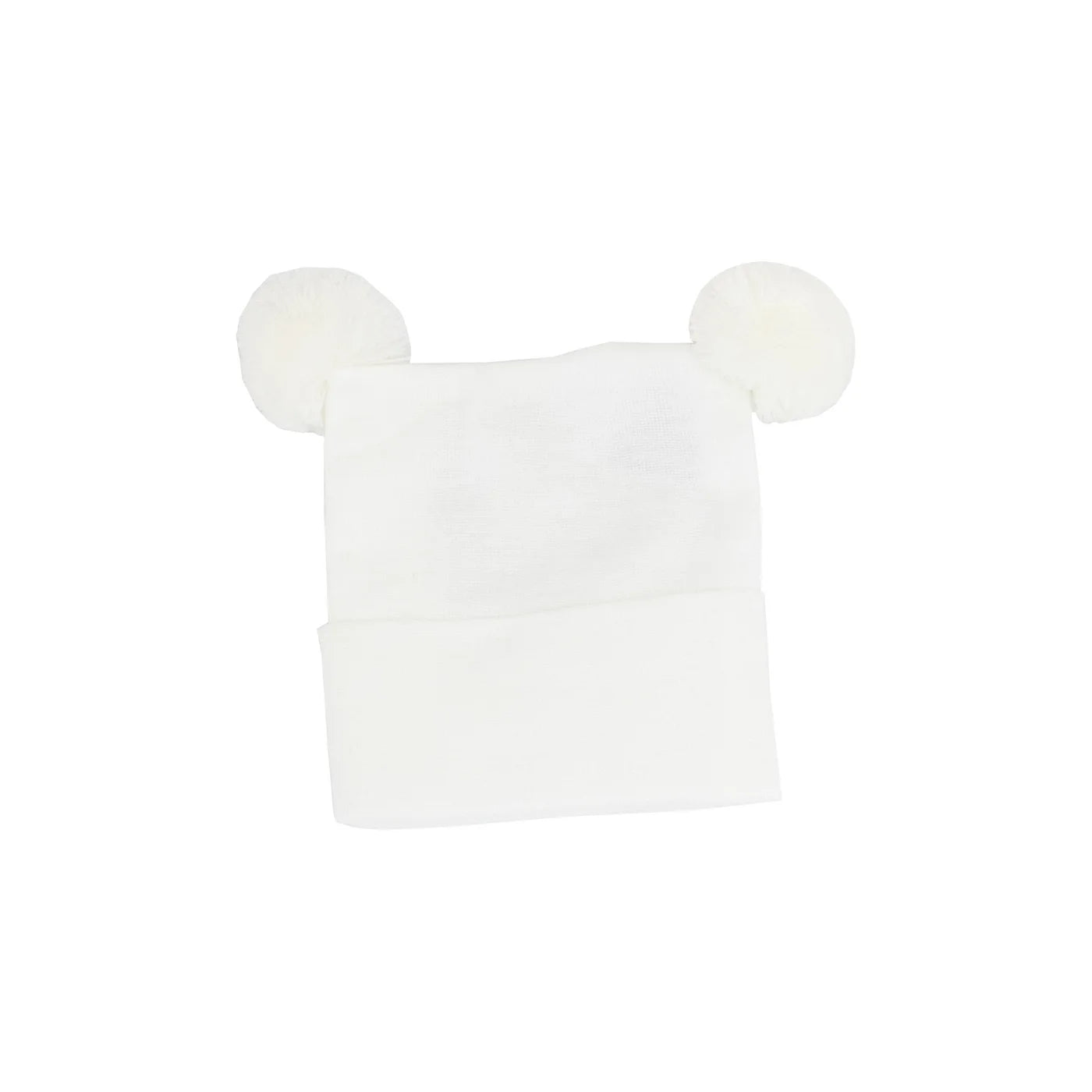 Kidcentral Essentials Newborn Hat - Double Pompom - White