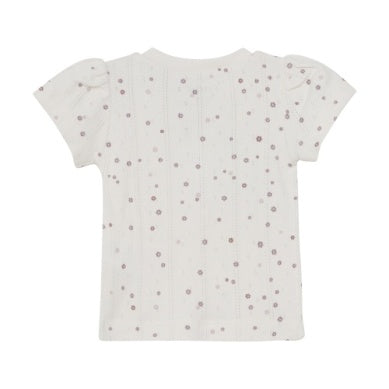 T-shirt made in a cute pointelle from FIXONI. It is made in a sweet all-over-print and have gathers on the sleve. Certified acc. to GOTS - organic CERES-0366, OEKO-TEX® STANDARD 100 Cert. No. 2276-365 DTI