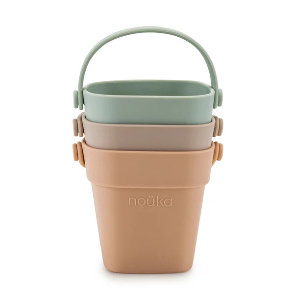 Stack, Pour, and Enjoy! Make bath time a splash with our noüka Tiny Bath Buckets, designed to bring endless fun and developmental benefits to your child's bath routine. Crafted with care, these buckets are not just toys but tools for growth, perfectly sized for little hands to foster motor skill development through playful pouring and splashing.