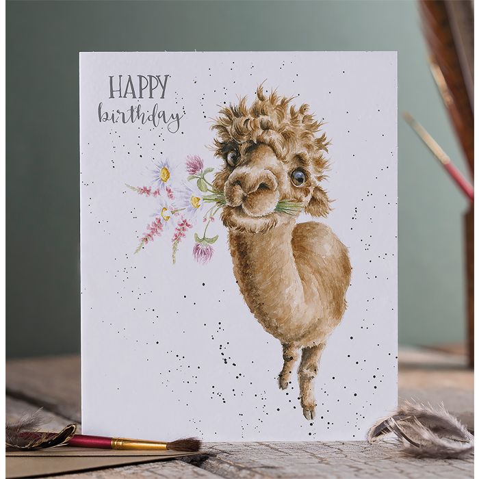 Send someone your birthday wishes with this lovely alpaca card which reads 'Happy Birthday' The card is printed on high quality, sustainably sourced textured board. It measures 6.77 x 4.84 inches and is supplied wrapped with a recycled, kraft envelope. The message inside reads 'go a little wild and have an amazing day'