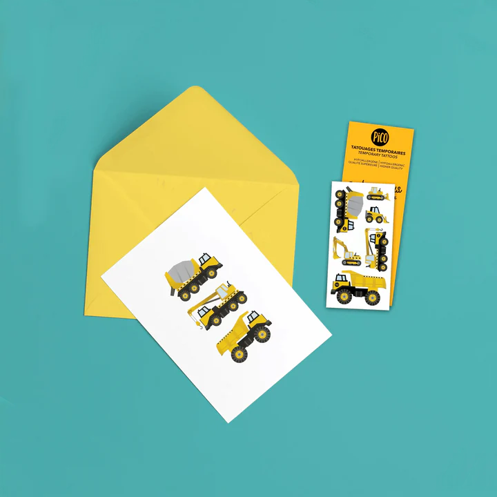 Are you looking for an original card to offer to a child around you? Here is our cute truck greeting card including a sheet of temporary tattoos of the same theme! You can also add some fun by pairing it with our cute tractor tattoos or adding some classic car stickers for an absolutely perfect set!