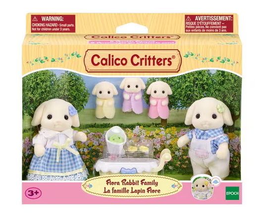 The Flora Rabbit Family have adorable droopy ears and love flowers. This set contains the father, mother, three cradled babies and a variety of accessories.