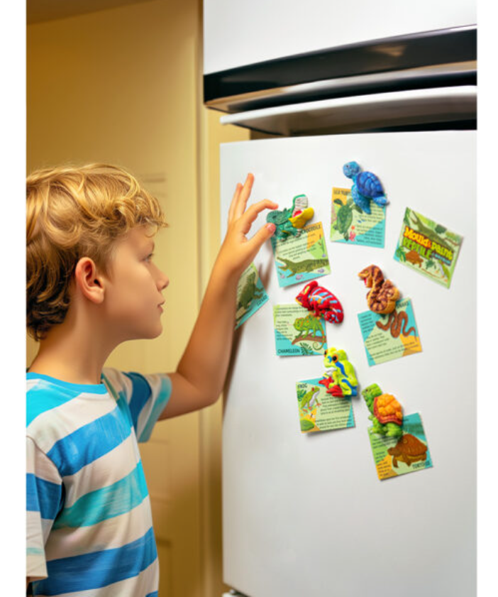 Transform your refrigerator into a fun animal kingdom with these Reptile and Amphibian magnets and badges!