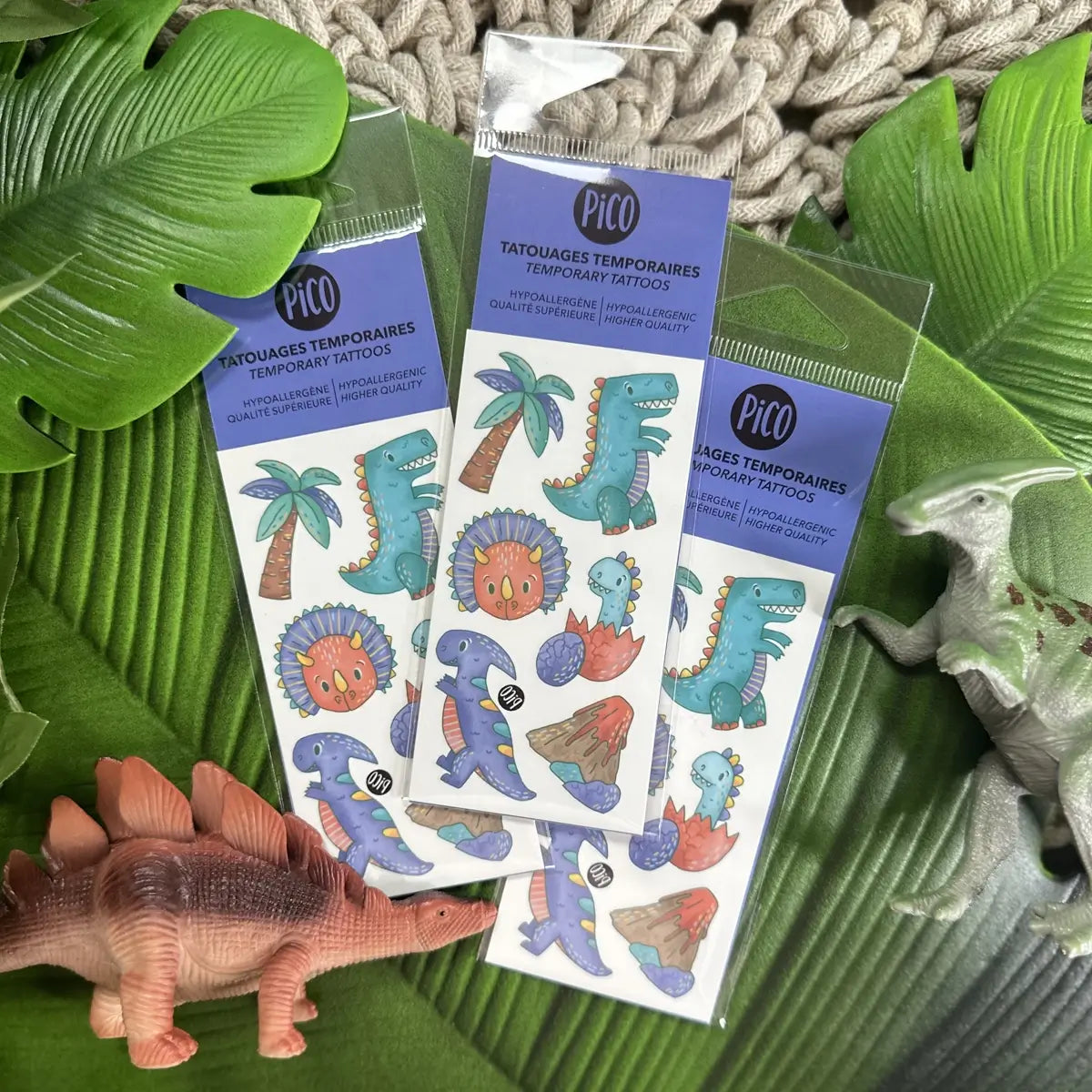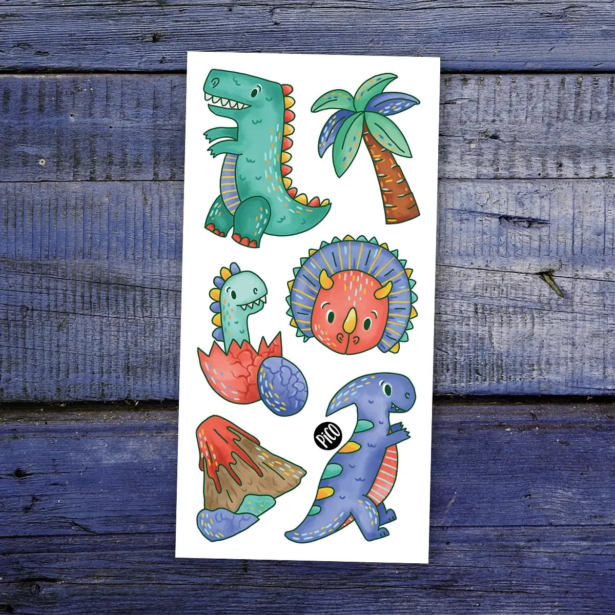 Tyrannosaurus rex and his dinosaur gang are always hanging out near the volcano. They love the warmth of the sun and lazing around under the palm trees. You could try combining them with our Dinosaurs or Dino-corns temporary tattoos.