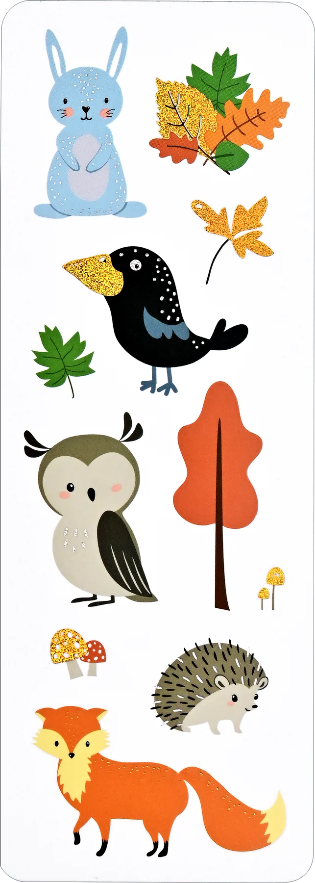 Vibrant sticker sheet set contains dozens of adorable woodland-themed stickers!