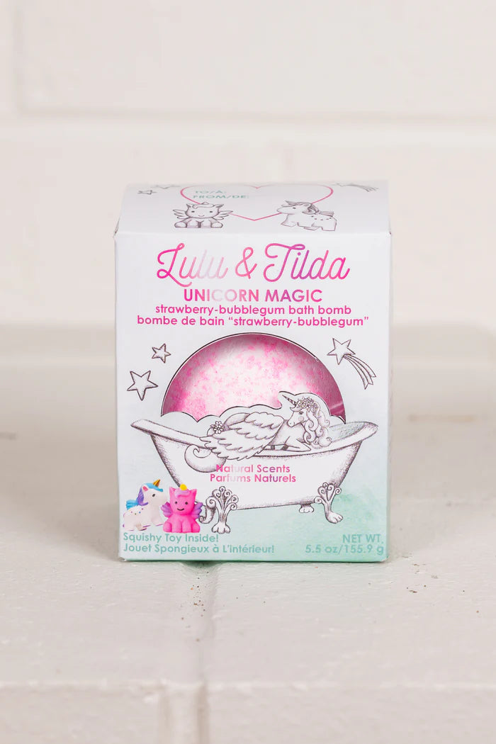 Transform bath time into a magical escape with the Unicorn Magic Bath Bomb! Swirling with enchanting white and pink colors, this bath bomb fills the tub with the sweet aroma of strawberry bubblegum. Crafted with natural, nourishing ingredients, it’s gentle on young skin, FDA-tested, and features food-grade colorants. As the biodegradable sparkle dances in the water, a delightful unicorn toy is revealed inside, making every soak an unforgettable surprise.