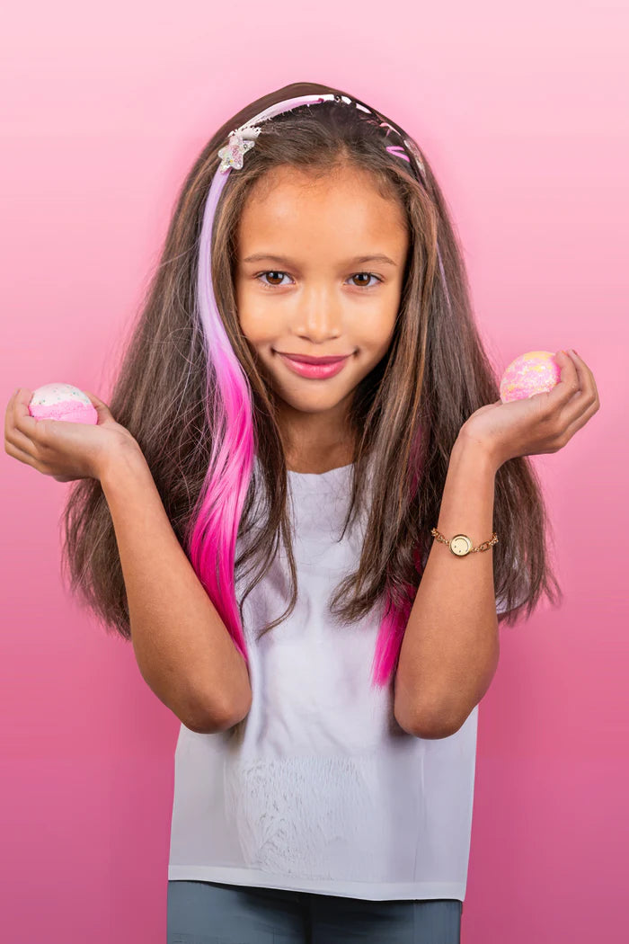 Transform bath time into a royal adventure! Choose from citrus OR fruity-tooty scents. Made with nourishing, natural ingredients and food-grade colorants, it’s gentle on young skin and tested for safety. The best part? Inside every bath bomb, you’ll find a surprise princess ring fit for royalty! With biodegradable sparkle and enchanting essential oils, this bath bomb turns every soak into a magical escape. 3.5 oz.
