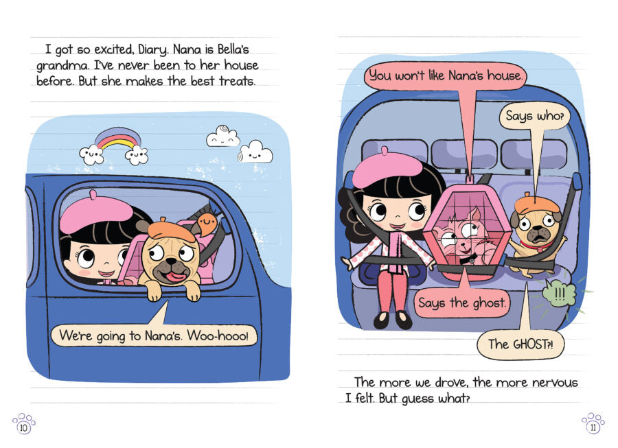Bub the pug sees a ghost in Grandma’s attic! Can he be brave enough to protect his human, Bella? Full-color chapter book.