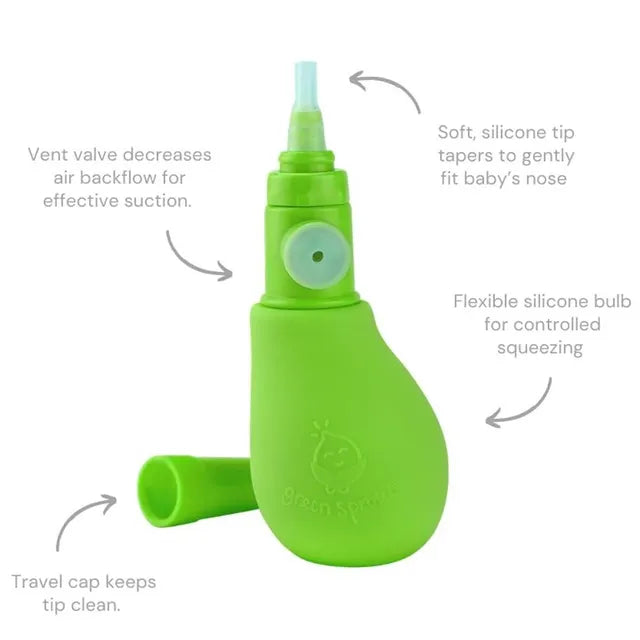 - Soft, petroleum-free silicone tip gently cleans baby's nose