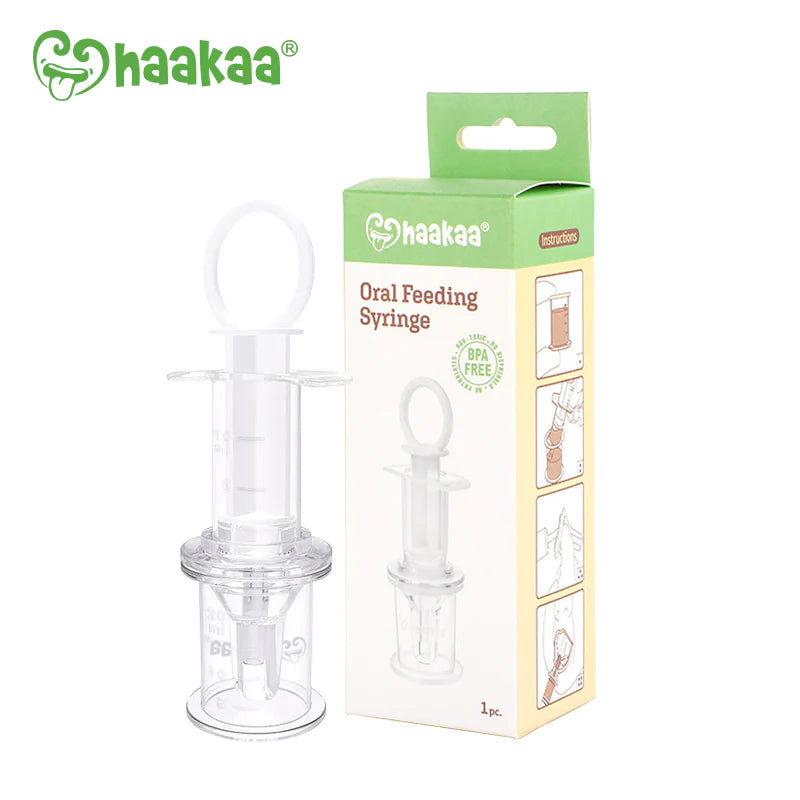 The Haakaa Oral Syringe is the perfect way to administer medicine, milk and liquid diets to premature or just plain fussy babies in a mess and waste-free way. Our dual-angled ports on either side of the nipple shoot liquid into the sides of your little one's mouth instead of the back of their throat to greatly reduce the risk of choking!