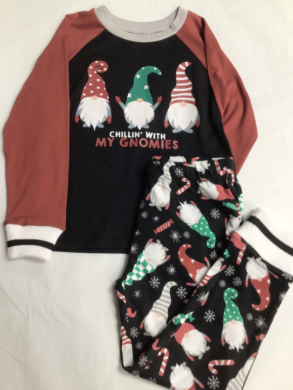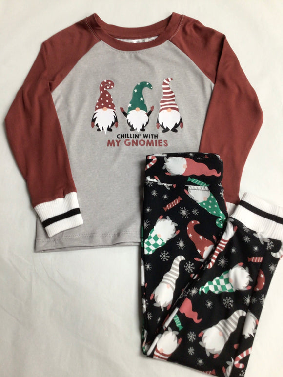 Petit Lem 2pc Pajama Set Gingerbread Print on Silver-Pink Peony KIDS'