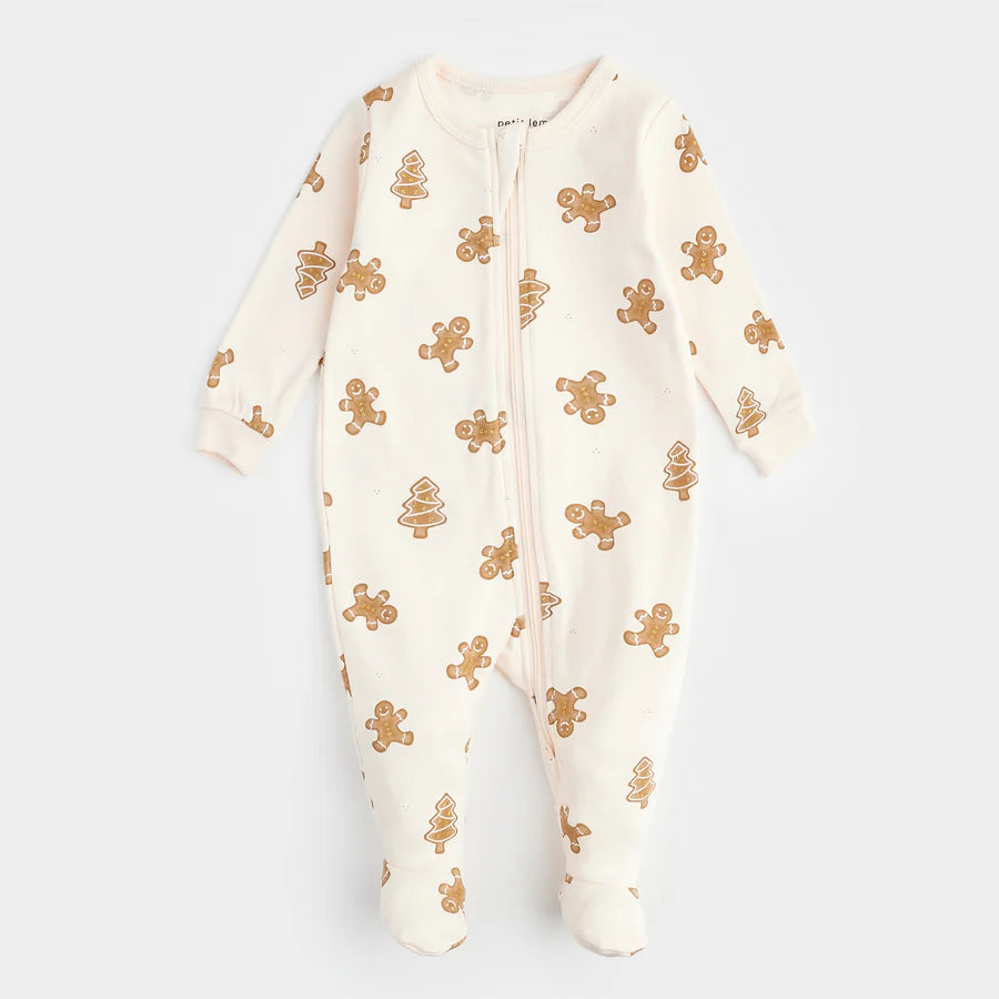 Petit Lem Sleeper Gingerbread Print on Silver-Pink Peony