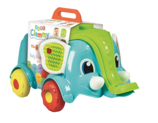 A super little wagon in the shape of a baby elephant you can take anywhere and bring to life incredible adventures that you can build yourself! Contains lots of Clemmy soft building blocks. The cover makes a handy play base, but also contains a handle so you can pull the baby elephant along behind you. The internal space allows you to replace all the building blocks once your child has finished playing. Stimulates your child's manual dexterity, motor skills and imagination.