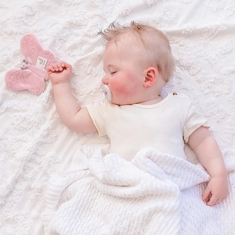 Crinkle, crackle, crunch—our pastel pink butterfly crinkle toy offers a delightful sensory experience for babies. Made from OCS100 organic cotton velour with embroidered details and crinkle paper filling, it helps develop motor skills, coordination, focus, and brain activity. Easy for little fingers to grip, it keeps babies engaged, entertained, and happily distracted, making it a perfect early developmental toy.