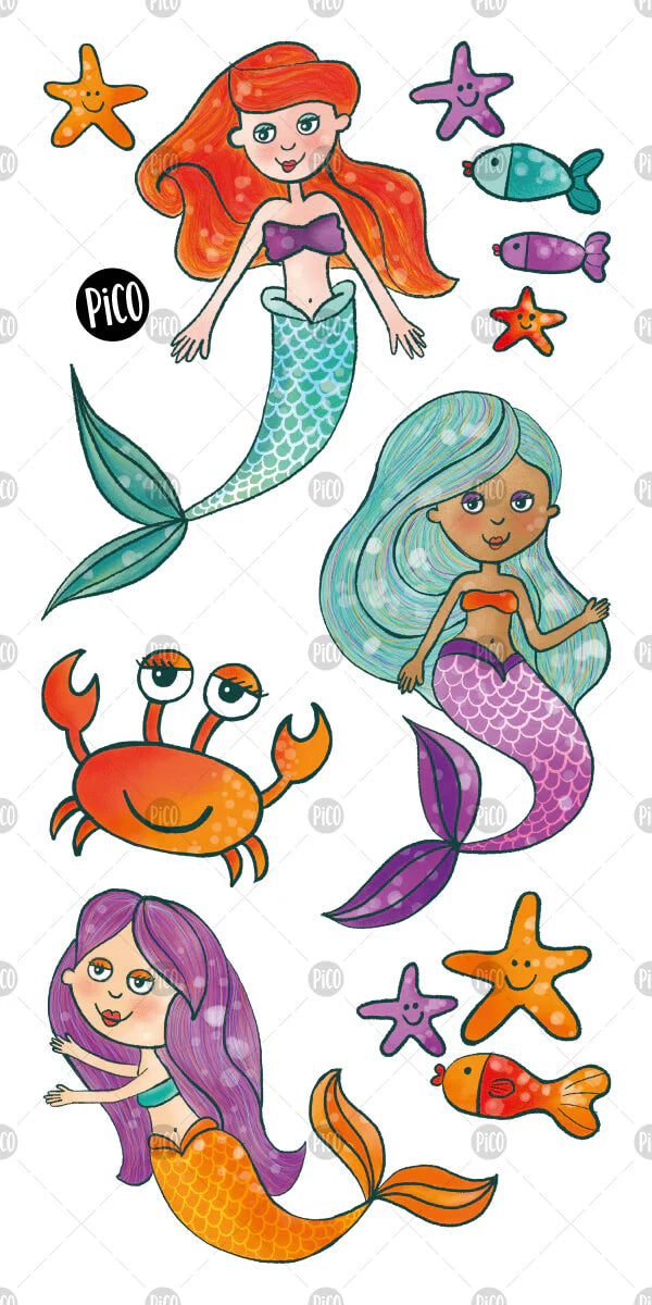 The mermaids go very well with our pack of multicolored fish tattoos. But did you know that they really like to sing with the choral of frog.