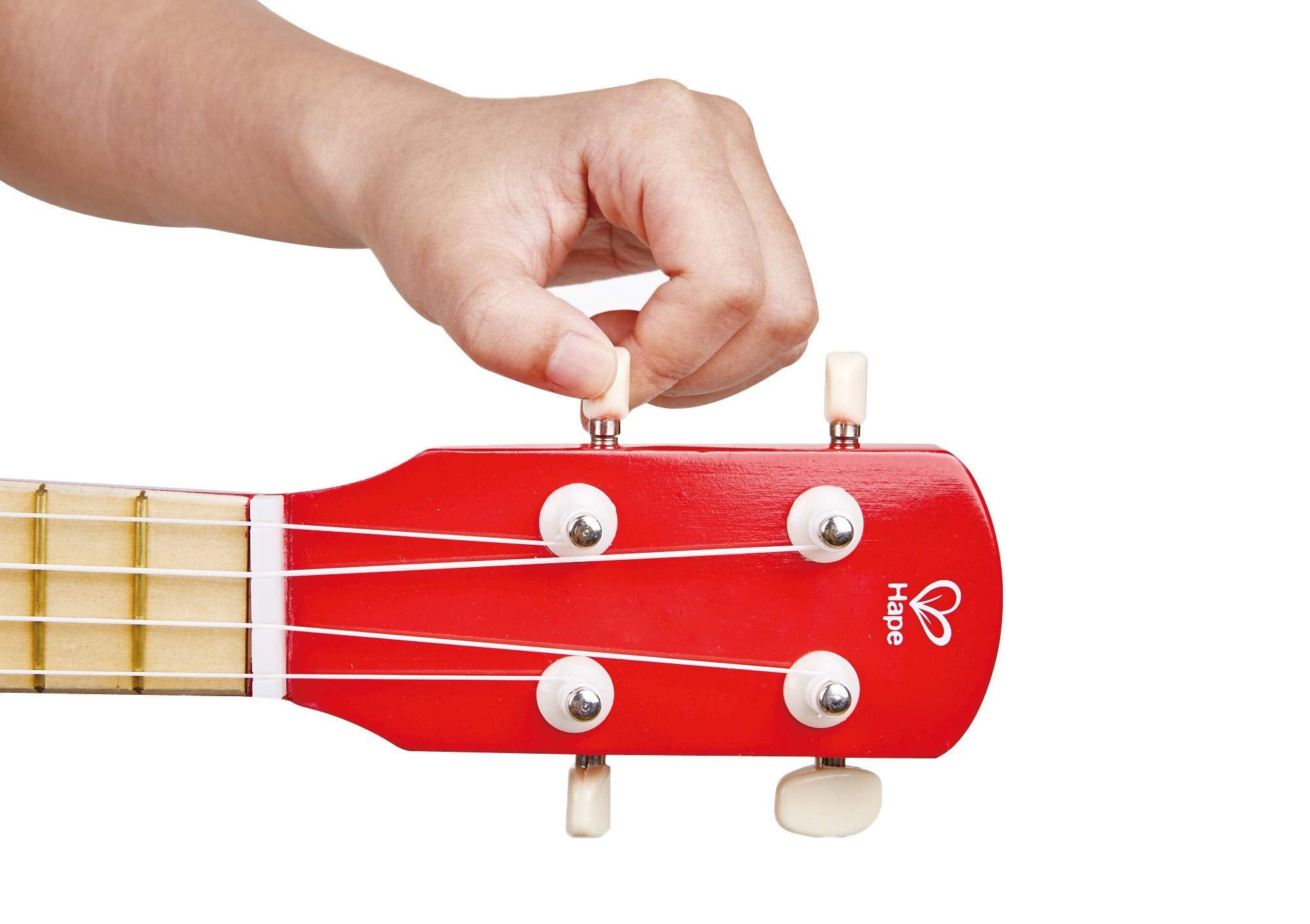 Play your favorite songs with this adorable red ukulele. It's fully tunable and has nylon strings – perfect for budding musicians. Recommended age: 3 to 8 yrs. Dimensions: 18 x 5.6 x 54 cm. About Hape: Hape Toys is one of the world's largest producers of toys made from sustainable materials. Hape toys are both creatively designed and eco-friendly. Using natural materials, water-based paints, and strict quality and safety standards make every Hape toy an investment kids will love and parents can trust