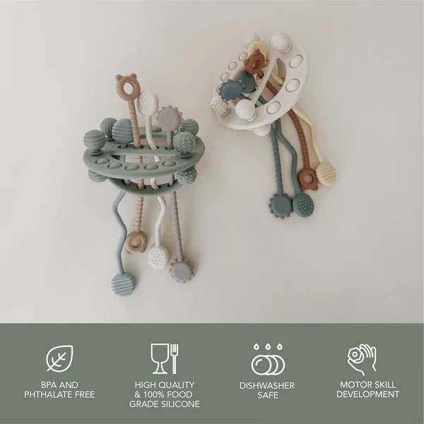 At noüka, we know that playtime is more than just fun—it’s an important opportunity for learning and growth. The noüka Tactile Sensory Toy is designed to keep your little one engaged for hours, encouraging sensory exploration and the development of fine motor skills. With pullable cords that produce different sounds and vibrations, this toy sparks curiosity while providing soothing relief for teething babies. A perfect blend of fun and development, the Tactile Sensory Toy helps nurture essential skills while keeping playtime exciting.