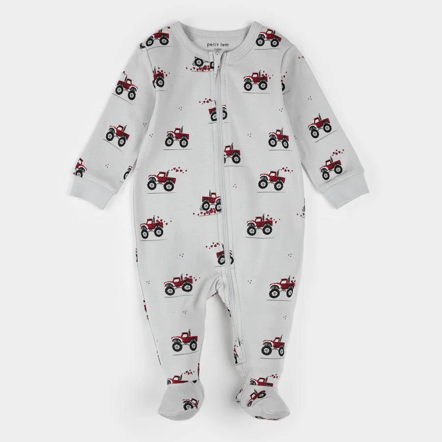 Petit Lem Sleeper Monster Truck Love Print on Lunar Rock