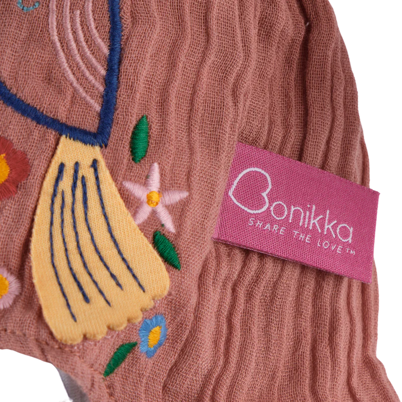 Aria is a bestselling organic baby soft doll, dressed in a dusty pink embroidered dress with lace details and a pastel blue bandana. Handmade with a soft, huggable body, she's perfect as a soothing companion or comforting empathy doll. Featuring plush hair, embroidered facial details, and removable dress, headband, and nappy, Aria is gentle, award-winning, and made from organic cotton and recycled polyester for safe, snuggly play.