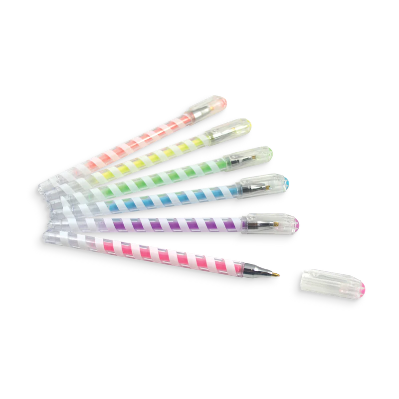 Totally Taffy Scented Gel Pens are a pleasure for your writing and drawing needs and delights. Each pen lays down a steady sheen of wonderfully smooth and vibrant pastel color gel ink. Each set comes with six delicious pastel colors each with its own candy scent (Orange, Lemon, Grape, Strawberry, Apple and Cherry).
