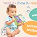 - Safely sewn paperlike pages and teether made from non-toxic, BPA-free material