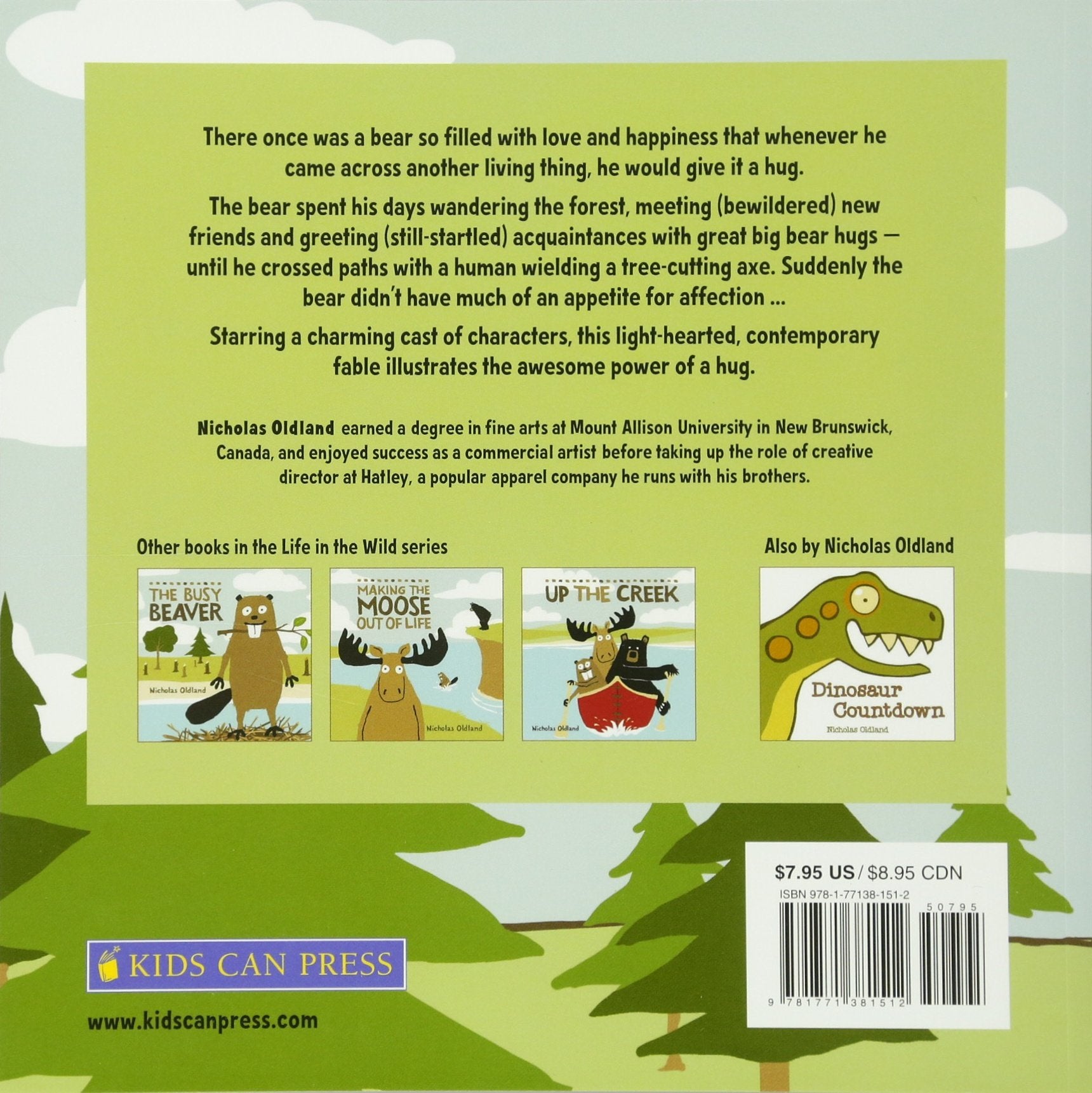 A huge bear is wandering through the forest - but wait a minute! Who's that he's hugging? A beaver? And a moose? And a bird? And a tree? Welcome to the world of Big Bear Hug, a contemporary fable about a bear who has an appetite for hugging everything in sight - even creatures that bears have been known to eat. One day, the benevolent bear meets up with a human. This human proceeds to do something the bear cannot understand: he raises his axe and begins to cut down a tree. Suddenly the bear doesn't feel like hugging anymore and must make a difficult decision on how to stop this destruction in his forest. The environmental message of Big Bear Hug is both funny and powerful, while simple enough to engage very young children and show them the awesome power of a hug.
