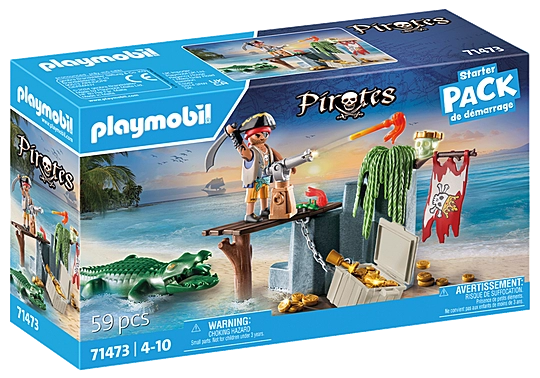 Embark on a treasure hunt with the pirate, but beware: An alligator is also interested in the valuable chest—or is it more in the pirate? The fantastic PLAYMOBIL Starter Packs invite children to dive directly into the diverse world of PLAYMOBIL. The sets include play figures and matching accessories from popular PLAYMOBIL worlds, are quickly assembled, and immediately ready play. Good for the environment: The playset is made up of more than 80% sustainable materials.