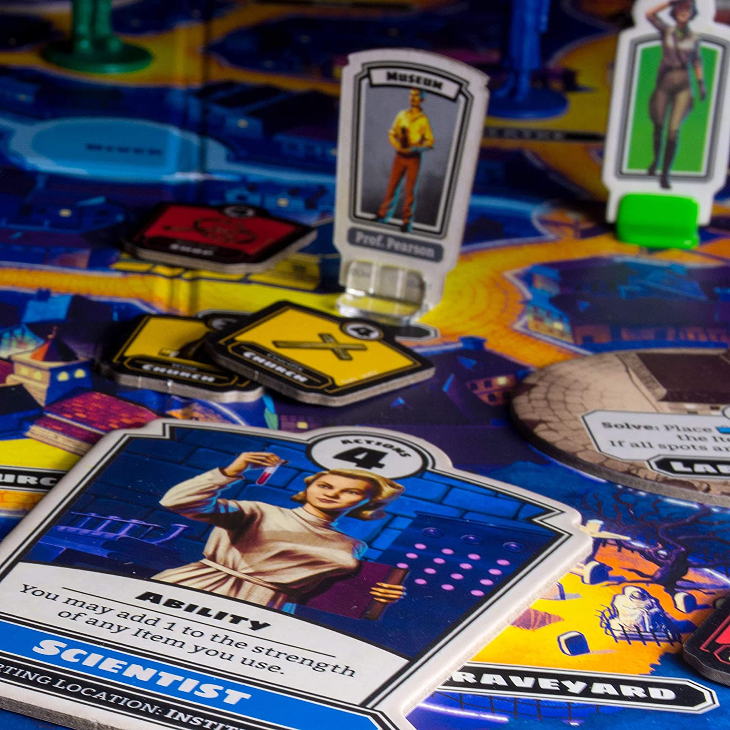 Frankenstein, Dracula, The Wolf Man, and other iconic horror film monsters descend upon your village to wreak havoc, hunt heroes, and terrorize villagers in this cooperative board game. Work together to defeat the monsters before the town is destroyed for good!