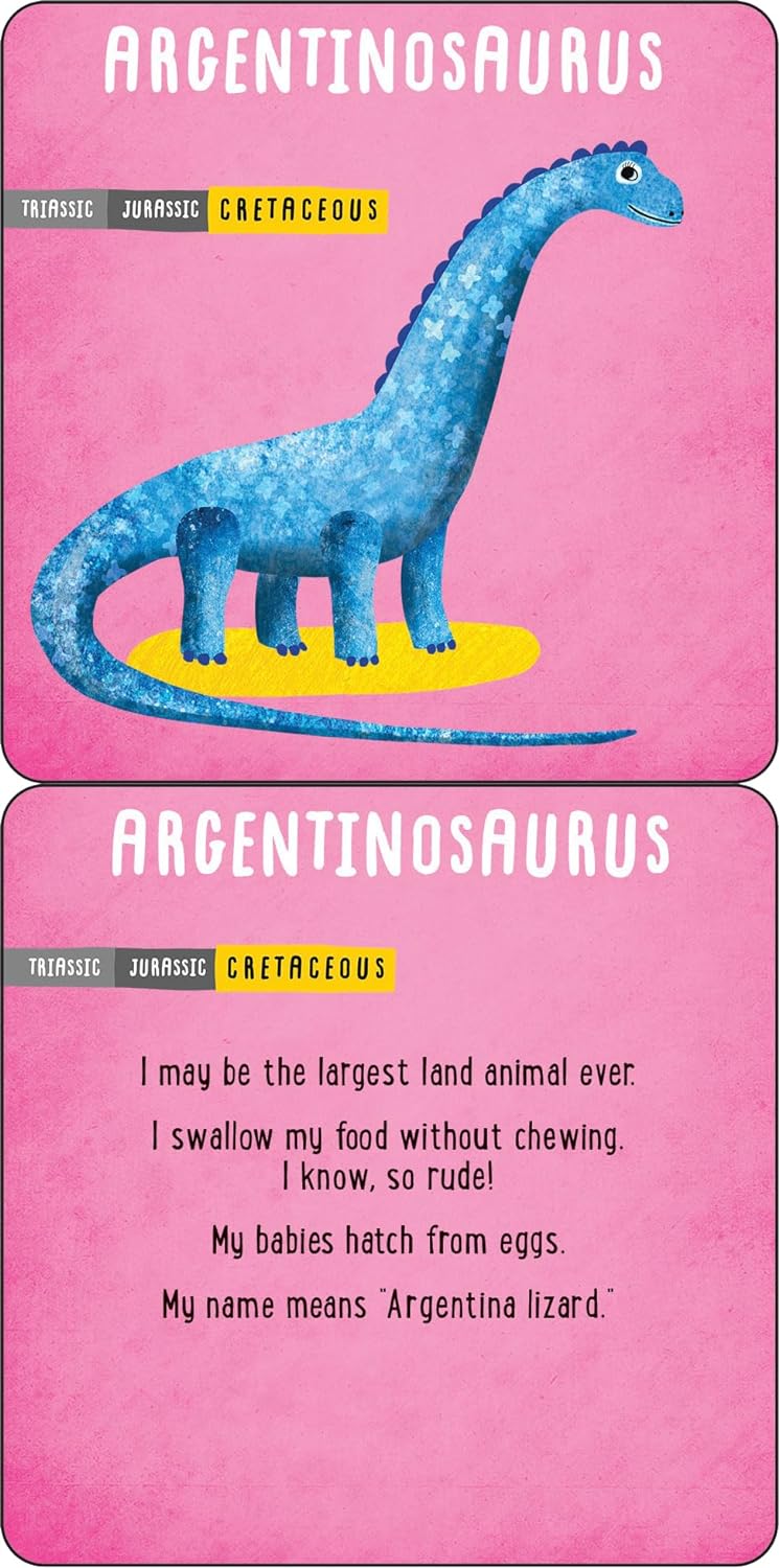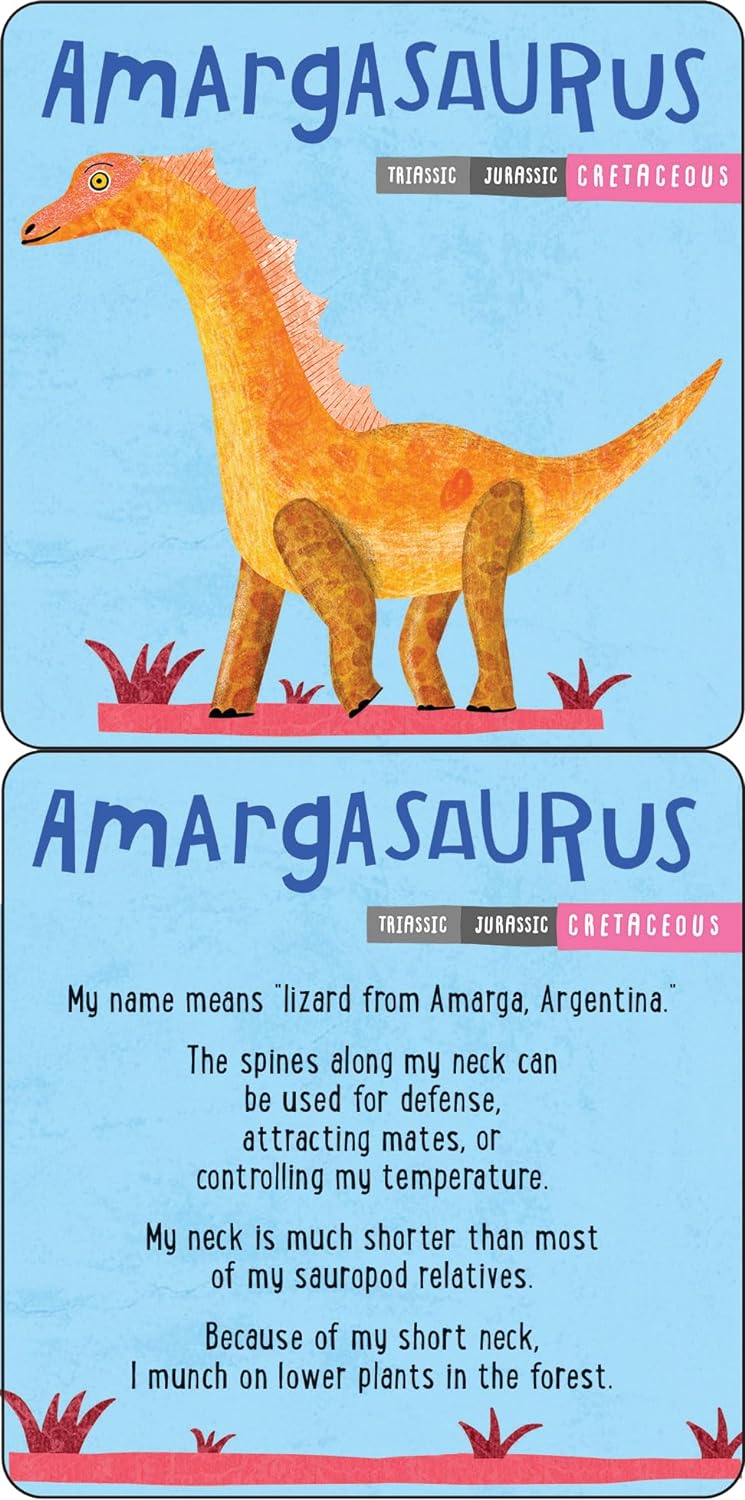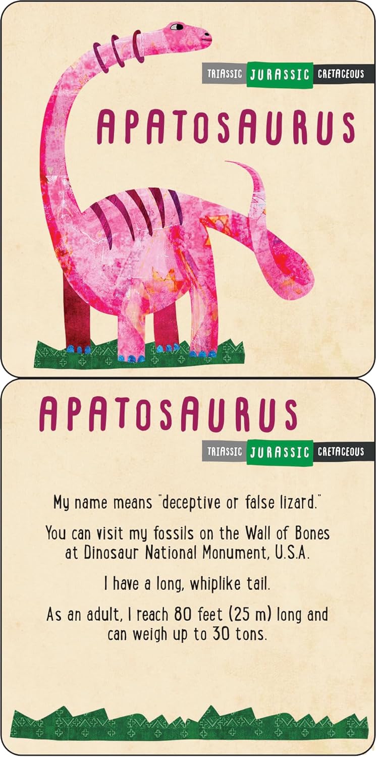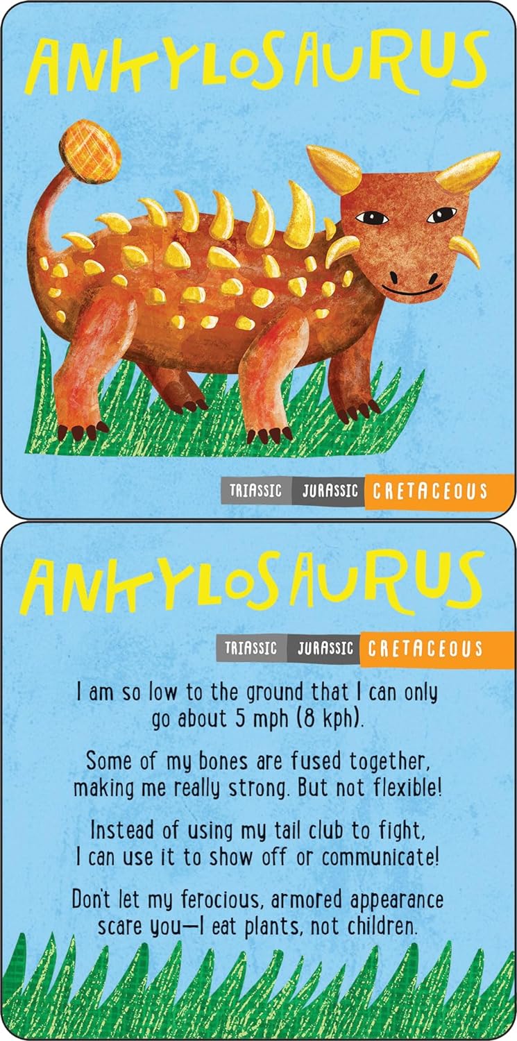 • Each colorful card in this deck comes with a ferocious dinosaur illustration and a fun dino fact.