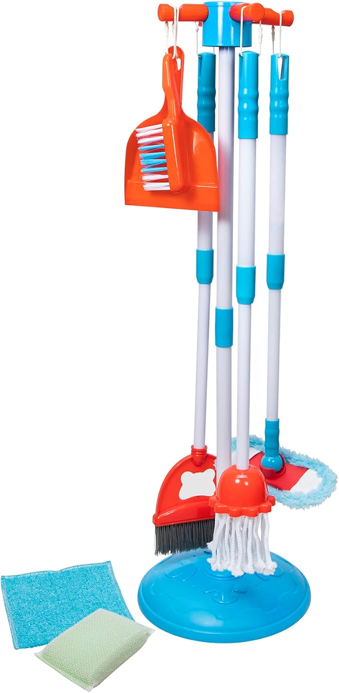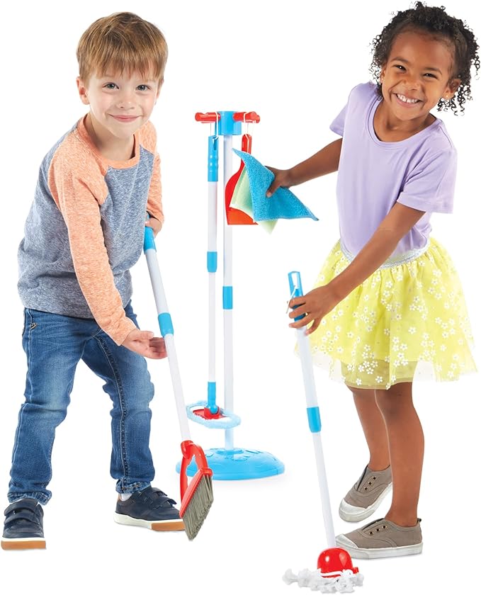 Create hours of fun pretend play for kids. The Nice & Tidy Clean Up Kit has multiple play tools that will inspire your kids. The tools feature telescoping handles that can adjust for kids of different heights and makes for easy shipping and storage when not in use. The kit will allow the child to take on duties to learn to be helpful and have a purpose and tasks.