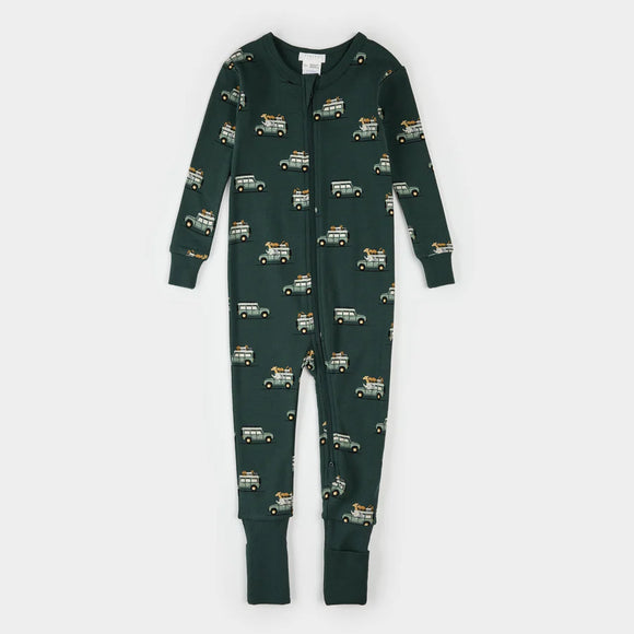 Coccoli Modal Zipper Footie Vehicles on Blue