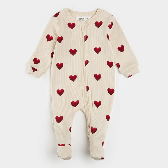 Coccoli Modal Zipper Footie Hearts on Light Pink