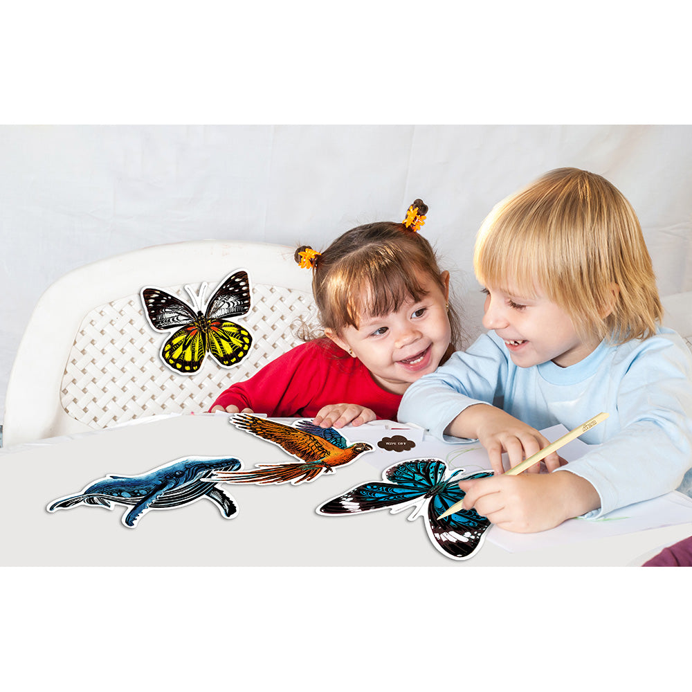 Discover our selection of scratch stickers that feature popular themes such as birds, sea animals, space, butterflies, and dinosaurs!