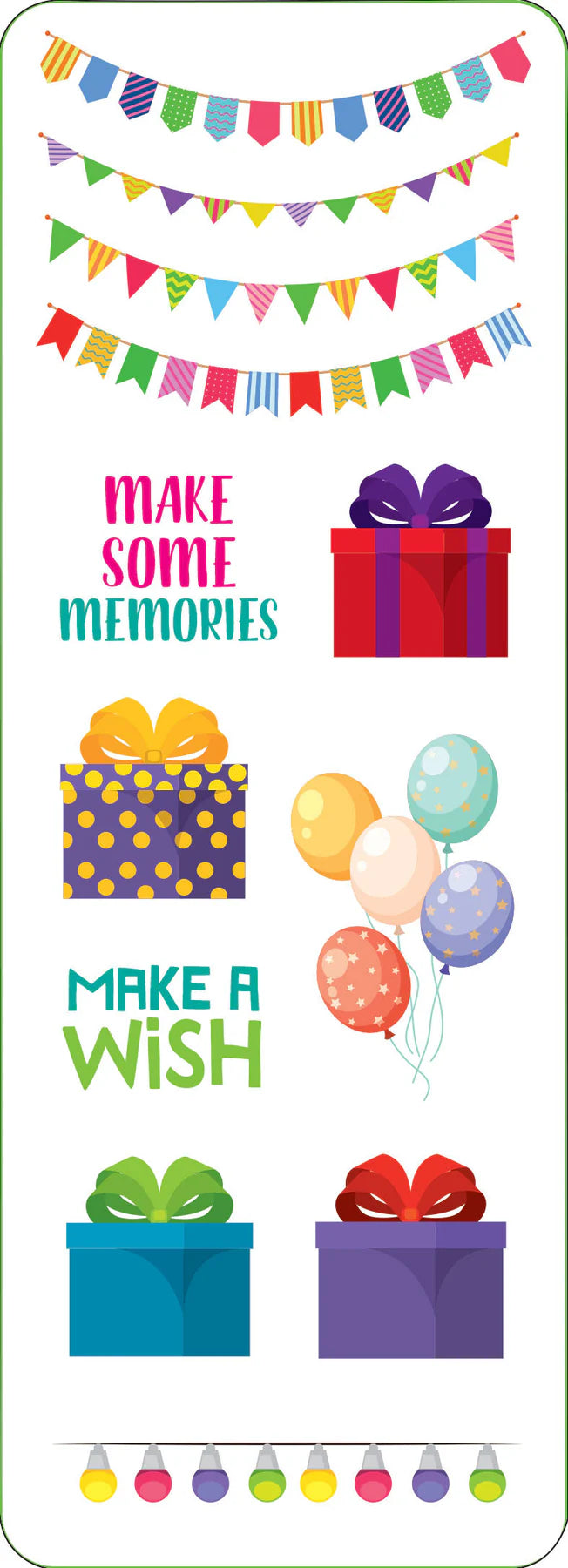 - Vibrant stickers depict cakes, candles, gifts, and so much more!