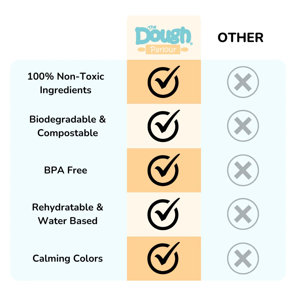 Our dough is best experienced fresh. Since we do not use any artificial preservatives, our scents and colours may begin to fade after 6 months un-opened. However, once opened, our dough can last for months if massaged and played with consistently, and stored well-sealed after playtime.
