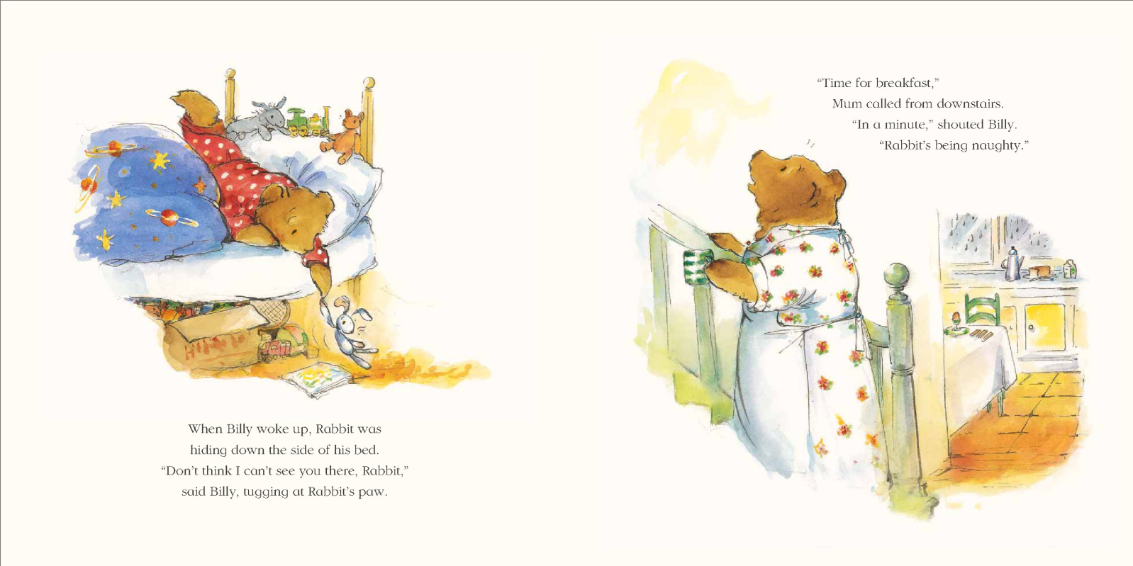 Find out what happens when Mum forgets to say something very important in this beautiful and heartwarming story, publishing in board book for the first time. Mum and Billy are very, very late. Billy says it's Rabbit's fault - Rabbit won't eat her breakfast. And now they have to run all the way to preschool! But in the rush of saying goodbye, Mum forgets to tell Billy something very important. I Forgot to Say I Love You is a charming story about the special relationship between parent and child from much-loved children's author, Miriam Moss, perfectly complemented by the warm, classic-style illustrations of Anna Currey.