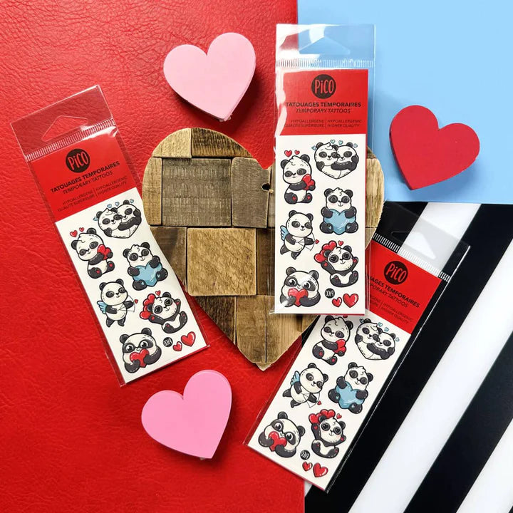 The panda lover tattoo is the perfect match for Valentine’s Day greetings or to send a kind message to someone special. Send a little love with the panda lover and his friends. You can add the Kitty Lover tattoos for even more love.