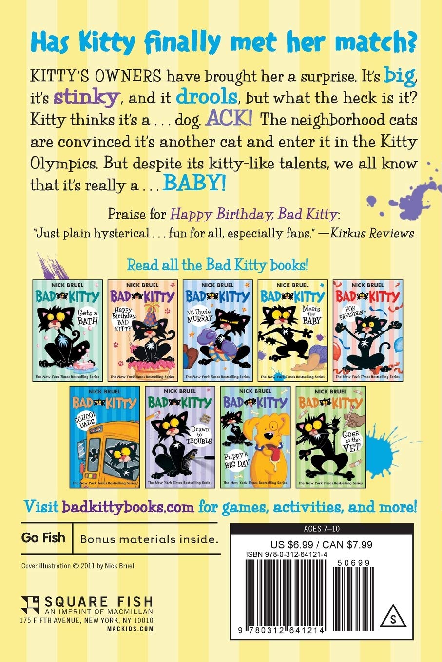 Kitty's owners are home with a big surprise for Kitty. But what is it? Kitty, reeling in horror, thinks it's a . . . dog. The neighbor cats are convinced it's a cat. But we all know that it's really a BABY! With Nick Bruel's trademark mix of antic humor (this time involving a Kitty game show and the Kitty Olympics―which the baby wins hands down), riotous illustrations, total mayhem, and Uncle Murray Fun Facts, this may be the funniest Kitty book yet, and the one that hits closest to home. Bad Kitty Meets the Baby is the winner of the 2012 Children's Choice Book Awards for Third to Fourth Grade Book of the Year.