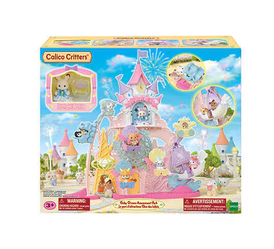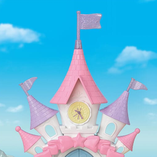This fun dream-like amusement park comes complete with a castle featuring a clock and a variety of exciting attractions. It comes with the Chocolate Rabbit baby dressed in a princess dress. Each attraction can be enjoyed by the babies and cradled babies. The hands on the clock can be moved. The Ferris wheel can be spun around. The unicorn-themed Viking ship can be swayed together with the waves. The horse-drawn carriage souring through the sky can be moved from left to right. The steam train can be driven up and down. The skyship can carry a cradled baby.