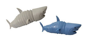 With a body of articulated dome sections in shades of blue or gray, fins and a face. When you bend, shake or twist the shark's body, small funny clicking sounds are heard. A fun thing that can help you relieve stress and ease the pressure from everyday life, studies or work. The body can rotate 360 ° and its sixteen sections make it move smoothly. Each sold separately.