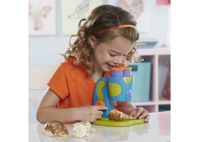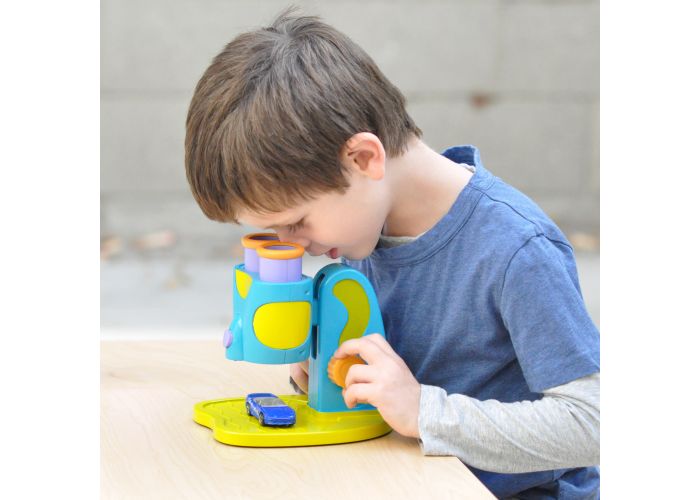 Designed by a scientist and mother of two preschoolers, My First Microscope allows kids to see a magnified hidden world with ease! This fully functional microscope is a real working science tool with two extra-large eyepieces and a chunky, kid-sized focusing knob. A bright LED with easy push-button action lights up details for even more discoveries.
