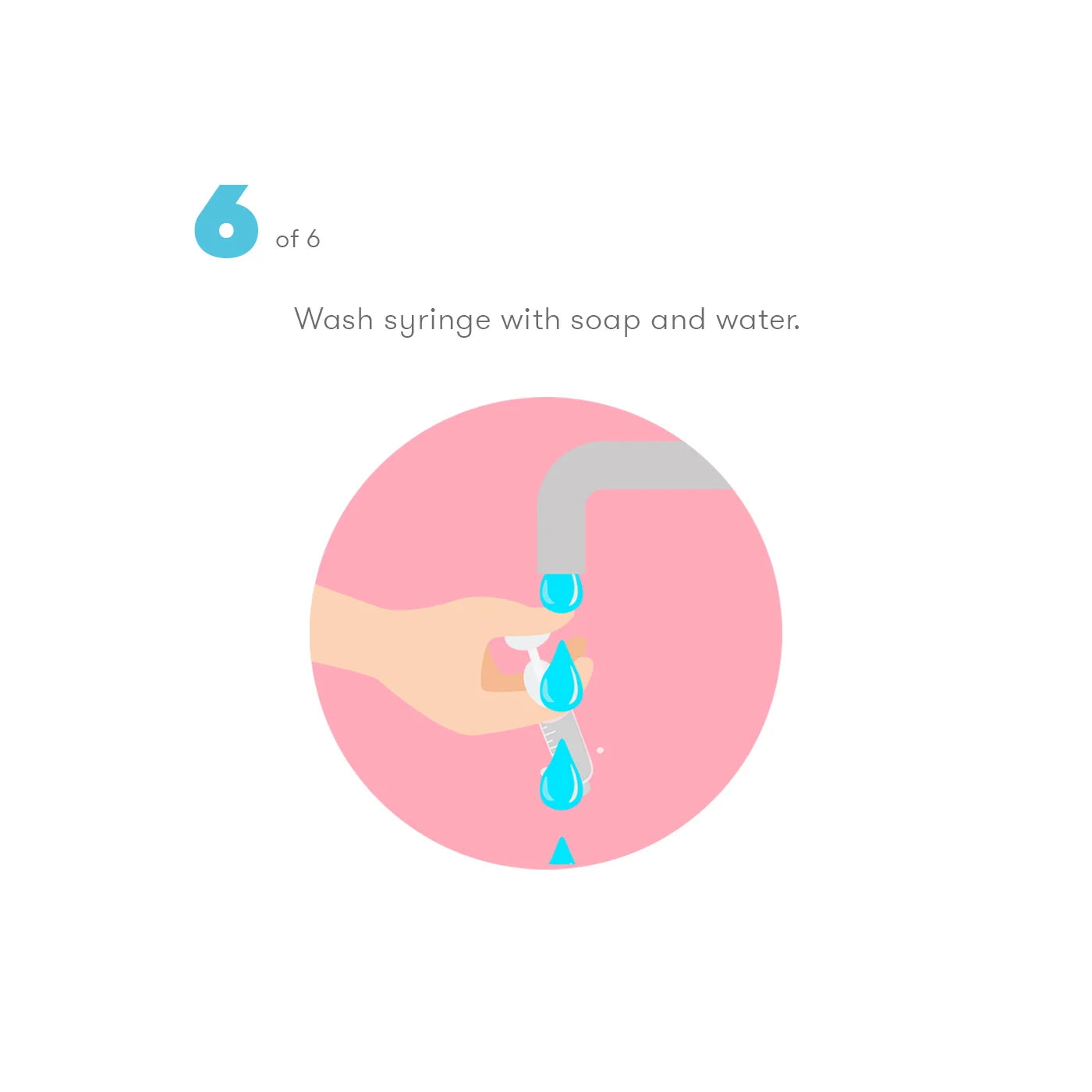 • Angled release prevents spit-ups by placing meds in baby's cheek