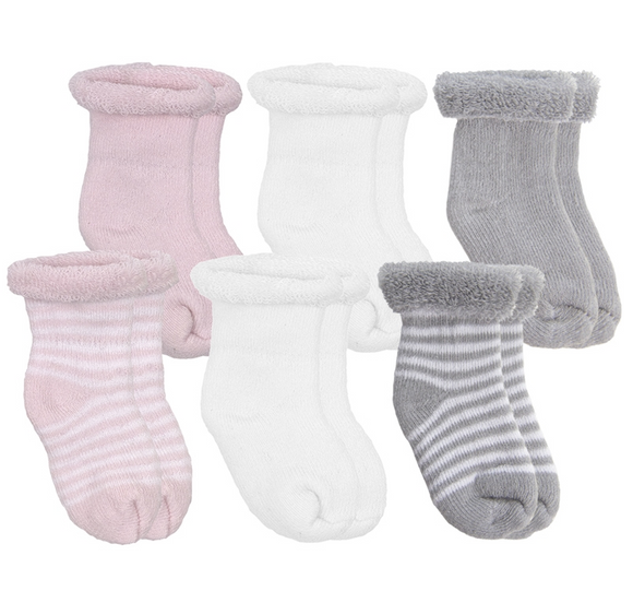 Never run out, this 6-pack ensures that you have extra socks during laundry time and for when one mysteriously disappears. Put a spare pair in the diaper bag when on the go! Use them as no scratch mitts when baby is born for a secondary use!